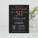 Surpreenda o 50th convite do aniversário com fundo preto e vermelho do brilho. Quadro. Aniversário adulto. Os homens ou as mulheres Bday convidam. Alguma idade. Para uma personalização mais adicional, clique por favor "personalizam-no" botão e usam-nos nossa ferramenta de design para alterar este modelo.