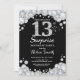 Surpresa 13 de Aniversário. Fundo do Quadro do Diamante do Silver Rhinestone. Convidado Elegante Birthday Bash. Preto e Branco. Aniversário Adulto. Mulheres Aniversário. Homens Aniversário. Para mais personalização, clique no botão "Personalizar" e use nossa ferramenta de design para modificar este modelo.