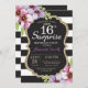 Surpresa 16º Convite de Aniversário para uma adolescente. Convidar Festa de aniversário preto e Dourado. Dourada Glitter. Flor Floral De Aquarela Púrpura. Black and White Stripes. Chalkboard. Digital Imprimível. Para mais personalização, clique no botão "Personalizar" e use nossa ferramenta de design para modificar este modelo.S