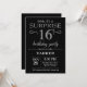 Surpreenda o 16º Convite de Aniversário com o Fundo do Glitter Negro e Silver. Chalkboard. Aniversário de criança. Menina ou Menina Menina Adolescente Convidam.