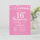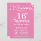 Surpresa 16º Convite de Aniversário com Luzes de Cordas. Fundo Rosa. Aniversário de criança. Menina Lady Elegante Modern. 13 15 16º 18º 20 21rua 30 40º 50º 60º 80 de 70 100º, qualquer idade. Para mais personalização, clique no botão "Personalizar" e use nossa ferramenta de design para modificar este modelo.