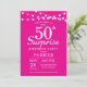 Surpreenda 50º Convite de Aniversário com Luzes de Cordas. Fundo Rosa Quente. Mulher Lady Elegante Modern. 13 15 16º 18º 20 21rua 30 40º 50º 60º 80 de 70 100º, qualquer idade. Para mais personalização, clique no botão "Personalizar" e use nossa ferramenta de design para modificar este modelo.