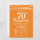 Surpresa 70 de Aniversário com Luzes de Cordas. Fundo Laranja e Branco. Homens ou Mulheres Aniversário. 13 15 16º 18º 20 21rua 30 40º 50º 60º 80 de 70 100º, qualquer idade. Para mais personalização, clique no botão "Personalizar" e use nossa ferramenta de design para modificar este modelo.