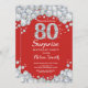 Surpresa 80 de Aniversário. Fundo Vermelho e Silver Rhinestone Diamond Vermelho. Convidado Elegante Birthday Bash. Aniversário Adulto. Mulheres Aniversário. Homens Aniversário. Para mais personalização, clique no botão "Personalizar" e use nossa ferramenta de design para modificar este modelo.