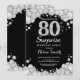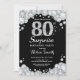 Convite de Aniversário para 80 de Surpresa. Fundo do Quadro de Diamantes do Silver Rhinestone. Convite para o Elegante Birthday Bash. Preto e branco. Aniversário Adulto. Aniversário das mulheres. Homens Aniversário. Para mais personalização, clique no botão "Personalizar" e use a ferramenta design para modificar este modelo.