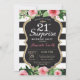 Convite para aniversário de 21 anos surpresa para mulheres adolescentes. Convidar Festa de aniversário preto e Dourado. Dourada Glitter. Flor Floral Cor de Água Rosa. Black and White Stripes. Chalkboard. Digital Imprimível. Para mais personalização, clique no botão "Personalizar" e use nossa ferramenta de design para modificar este modelo.S