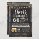 Surpreenda Cheers and Beers 60º Convite de Aniversário com conselho de giz e inscrição com idade personalizável.
