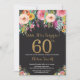 Surpresa Floral 60º Convite de Aniversário para Mulheres. Flor Floral de Aquarela. Glitter preto e Dourado. Rosa, Amarelo, Laranja, Flor Roxo. Aniversário Adulto. Para mais personalização, clique no botão "Personalizar" e use nossa ferramenta de design para modificar este modelo.
