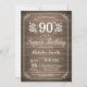 Surpresa Rustic 90 Birthday Invitation com fundo de madeira rustica e padrão de flor floral. Aniversário Adulto. Homens ou Mulheres Aniversário. Menino ou Menina Menina Menina Adolescente Convidam. 13 15 de 16º 18º 20 21rua 30 de 40º 50º 80 de 60º 70 de 100º. Qualquer Idade. Para mais personalização, clique no botão "Personalizar" e use nossa ferramenta de design para modificar este modelo.