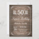 Surpresa Rustic 50th Birthday Invitation com fundo de madeira rustica e padrão de flor floral. Aniversário Adulto. Homens ou Mulheres Aniversário. Menino ou Menina Menina Menina Adolescente Convidam. 13 15 de 16º 18º 20 21rua 30 de 40º 50º 80 de 60º 70 de 100º. Qualquer Idade. Para mais personalização, clique no botão "Personalizar" e use nossa ferramenta de design para modificar este modelo.