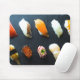 Elevate your workspace with this modern sushi-themed mouse pad, featuring a perfectly aligned array of nigiri and gunkan sushi on a sleek black slate surface. With ten unique pieces — from tamago and scallop to ikura, eel, and salmon — the composition is as stylish as it is delicious.