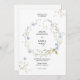 Convide seus entes queridos para um dia de amor e celebração com este convite de casamento encantador, enfeitado com delicados florais azuis e verde macio. A coroa branca cria uma atmosfera de romance e elegância eterno, perfeita para um casamento temático de primavera ou jardim. Que a beleza da natureza dê o tom para sua inesquecível ocasião.