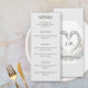 Menu de casamento com uma design moderna, romântica. Adicione o monograma desejado. Personalize o texto na parte frontal e traseira do menu. Excelente, cor neutra para acomodar uma variedade de decorações. Use a modelo para criar o seu próprio menu de casamento do cisne.