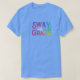 Um design de t-shirt vibrante com o texto "Sway with Grace" num gradiente multicolorido, onde as cores fluem suavemente umas para as outras