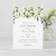 Barato personalizado de convites para chuveiros para bebês personalizados com os detalhes da sua festa. Esta bonito design botânica apresenta uma moldura de aquarela de folhas verdes e rosas de marfim. Use as ferramentas de design para personalizar o texto, editar as fontes e as cores ou adicionar suas próprias fotos para criar um tipo de convite para chás de fraldas florais rústicos.