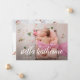 Anúncios de nascimento elegantes apresentam sua foto favorita de recém-nascido em hemorragia de cheio, com o nome do bebê sobreposto em um roteiro de caligrafia branca. Personalize com as estatísticas de nascimento do bebê. Adicione mais seis fotos ao fundo em um layout de colagem, com os nomes dos pais ou da família no centro.