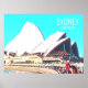 Poster de viagens com fotografia original do famoso ícone da arquitetura do prédio da Sydney Opera House em Sydney, Austrália, com um tom azul aqua de céu. Viagem australiano impressão. Cores modernas estranhas.