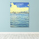 Viagem de impressão do horizonte de Sydney Harbor em um estilo moderno e colorido de impressão de viagem de arte. O céu azul e a água fedorenta azul num dia quente de Verão na cidade de Sydney, Austrália. De uma foto original.