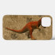 O feroz T-Rex, com pegadas de dinossauro fossilizadas em pedra.