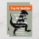 T Rex Dinossaur Cinza Greenish e Convites de festas de aniversários Laranja para uma festa de aniversário de meninos. A design é simples, mas divertida para crianças que amam essas criaturas extintas e estão tendo uma festa de dino ou fóssil de dia. Basta adicionar seu próprio texto ao modelo de convite de aniversário do dinossauro. Brincadeira com "Dino-Mite" e "ROAARRRSVP". As costas têm um pequeno dinossauro T-Rex no canto inferior. As cores do tom terrestre se misturam perfeitamente para um futuro fóssil pré-histórico encontrando paleontólogo.