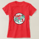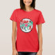 Uma t-shirt com a imagem de um t-rex verde a vestir um chapéu preto com corações à volta. O texto diz que Rawr quer dizer que te amo em t-rex.
