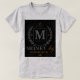 Celebrate prestige and personal legacy with this elegant horizontal design, sized precisely at 14 × 7 cm. Set against a deep black background, the composition features a bold silver monogram M enclosed in a square frame, crowned with a minimalist gold emblem. A silver laurel wreath encircles the monogram, flanked by two gold stars that symbolize excellence and achievement.