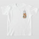 A humorous vector design featuring a frantic orange fish character dressed as a sushi chef. The fish wears a tall white toque and uniform, looking overwhelmed with bulging eyes and sweat drops while standing over a messy cutting board. The scene is scattered with sushi ingredients like rice, nori, sashimi slices, tamago sushi, and a sharp knife, capturing a chaotic culinary moment.