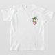 This charming design features an adorable, anthropomorphic cupcake character with pink swirled frosting and colorful sprinkles. The sweet-faced cupcake is wearing a woven straw sun hat adorned with a blue ribbon and a small pink flower. It is depicted sitting contentedly beneath a cartoon-style palm tree with large green leaves and brown coconuts, all set against a plain light grey background.
