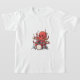This dynamic illustration captures a talented red octopus fully immersed in an intense percussion solo. Using its natural advantage, the aquatic musician wields four drumsticks simultaneously with its tentacles, striking a rhythm across a comprehensive drum set. The kit itself matches the octopus in a vibrant shade of red, complete with gleaming gold cymbals, a large bass drum, and sturdy silver hardware. With wide, focused eyes and an expressive mouth, the character exudes energy and rhythm in this fun, clean-lined cartoon artwork.