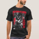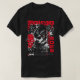 The design features several detailed, intense anime characters wearing tactical gear and futuristic visor goggles, emphasizing a dystopian streetwear look. The artwork is dominated by a high-contrast red, black, and white palette, which perfectly captures the mood of the neon-lit streets. Bold, vertical Japanese text and an excerpt describing the dangers of the megacorporations and cybernetic enhancements add to the deep world-building. This piece is essential for fans of cyberpunk aesthetics, gritty manga, dystopian fiction, and edgy Japanese street fashion.