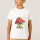 A cute fantasy illustration of a tiny green frog sitting peacefully beneath a red mushroom cap with white spots. The frog’s big glossy eyes and soft blush cheeks give a sweet, heart‑warming expression, while gentle raindrops slide down the mushroom like a natural umbrella. Warm colors, smooth shading, and a cozy woodland mood make the scene feel magical, calm, and storybook‑like.