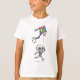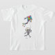 This vibrant artwork depicts an adorable, cartoon-style skeleton captured in a moment of pure joy. The character is shown mid-stride, running enthusiastically while flying a classic diamond-shaped kite. The kite features a playful geometric arrangement of pink, blue, yellow, and green panels, accented by long, multi-colored ribbons trailing in the wind. The design combines clean lines with bright colors, creating a whimsical contrast between the spooky skeleton figure and the lighthearted, sunny activity.
