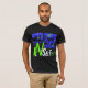 The design uses large, stacked block typography in contrasting and vibrant colors—electric blue and neon lime green—against a stark black background. Abstract squiggles and geometric shapes add an element of chaotic energy, giving the piece a distinct 80s or 90s aesthetic. The fragmented layout emphasizes the message of inner strength and self-reliance. This is the perfect apparel for anyone who loves bright, expressive graphics, or needs a dose of visual motivation to achieve their goals.