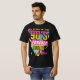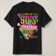 The design uses a dynamic, high-energy style featuring a retro boombox, lightning bolts, and bold geometric shapes. The color palette is pure 90s, using bright pink, yellow, and blue blocks. This piece perfectly captures the nostalgia and carefree vibe of 90s pop culture. It's the ideal shirt for anyone who grew up in the 90s, loves a throwback aesthetic, or just appreciates a fun, colorful, statement tee.