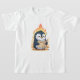 A front view of a distressed blue penguin character clutching a folded travel map. The penguin has a worried expression and is sweating profusely with visible blue water droplets on its face. Behind the character, large orange and yellow flames are roaring, creating a chaotic and humorous scene of being lost or in trouble.