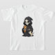 An adorable cartoon character design featuring a cute Grim Reaper showing a gentle side. The skeleton figure, dressed in a classic black hooded robe with large eye sockets, is lovingly holding two kittens in its arms: a wide-eyed orange tabby and a happy sleeping black cat. A third cat, a spotted calico, stands on its hind legs at the bottom, playfully reaching up toward the reaper. The artwork utilizes a clean vector style with bold outlines and flat colors, highlighting the humorous and heartwarming contrast between the symbol of death and charming pets.