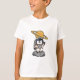 This stellar digital artwork portrays a charming penguin explorer suited up for deep space travel. The adorable flightless bird is decked out in a white pressure suit with bright orange straps and a high-tech chest control panel, its happy face visible through a clear bubble helmet. Standing proudly on a grey, cratered asteroid and waving a friendly flipper, the character is framed by a magnificent yellow and orange ringed planet floating in the background. The design captures a spirit of intergalactic adventure with clean lines and a vibrant, friendly aesthetic.