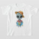 A colorful cartoon illustration depicting a cute grey extraterrestrial character holding a large, unfolded world map. The alien has a confused expression with wide, glossy black eyes and is pointing at a location on the map. The character is dressed in a tropical vacation outfit, wearing a woven straw hat with a red band and a bright red Hawaiian shirt featuring white floral patterns.