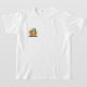 A blush-cheeked little brown bear wraps both paws around a giant thermos, creating an adorable oversized “hug” moment. The teal-and-orange bottle shines with glossy highlights and a bold handle, set against a warm yellow arch filled with playful dots for a soft, cheerful backdrop. Clean outlines and smooth shading give it a bright kawaii sticker look.