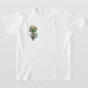 This humorous and adorable illustration features a small green alien dressed as the ultimate vacationer. The cute extraterrestrial visitor is decked out in a beige bucket hat, blue shorts, and a bright red Hawaiian shirt covered in white hibiscus flowers. With a retro camera hanging around its neck, the character is intently studying a colorful world map held in its hands, looking like a lost traveler exploring Earth. The design uses bold lines and vibrant colors to capture a fun, whimsical moment of sci-fi sightseeing.