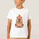 A calm and charming illustration of a serene capybara sitting in a meditative pose, eyes gently closed and expression soft with contentment. A small orange rests perfectly on its head, adding a playful touch of balance and quiet humor. Warm earthy tones, rounded shapes, and subtle blush on the cheeks give the character a cozy, wholesome feel. The clean lines and smooth shading create a soothing visual harmony, blending cuteness and tranquility into a delightful, mindful moment.