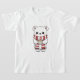 An adorable cartoon polar bear standing comfortably while holding a steaming cup of hot coffee featuring heart-shaped latte art. The charming white bear is wrapped in a cozy red and white striped winter scarf and features rosy cheeks and large, expressive eyes, creating a warm and inviting winter scene.