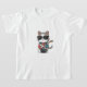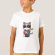 A vector design of a cool grey and white cat character with a white crown marking on its forehead. The feline is wearing black sunglasses and a blue short-sleeved shirt over a white tee. It is standing and playing a red and white electric guitar, which is connected by a cable to a small black amplifier resting on the floor beside it. The overall style is a cute and stylish cartoon.