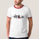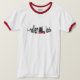O t-shirt clássico da campainha. Preshrunk, algodão do heavyweight de 5,6 onças 100%. Corpo branco com contraste de bandas vermelhas do decote e da luva. a Dobro-agulha costurou as bainhas do decote, da parte inferior e da luva. gravação do Ombro-à-ombro. Colar sem emenda.