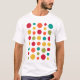 Um design composto de cinco colunas de sete pontos circulares ordenados por tamanho e dispostos em direções alternadas em um palete atraente de cores.