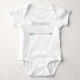 Este equipamento adorável caracteriza uma pia batismal feita sob encomenda que diz que a "aventura espera" acentuado com uma seta tribal debaixo da escrita. Este equipamento faria um grande presente do chá de fraldas ou dá-lo-ia diretamente a esse pequeno doce em sua vida.