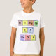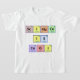A frase "ciência é legal" é soletrada para fora usando símbolos da mesa de elementos periódica. O néon do elemento (Ne) foi girado de cabeça para baixo a fim receber as letras exigidas para a palavra "ciência". Além, "eu" (iodo) sou usado porque um substituto para L lowercase como lá não é nenhum elemento com o símbolo "L".