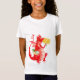 Um t-shirt curto-sleeved do algodão com um motivo pintado à mão de um dragão vermelho com alho-porros e daffodils, símbolos de Wales.