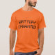 Um t-shirt alaranjado que diga "a pilhas"