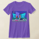 Este t-shirt aberto retro da festa em casa p-lo-á no humor partying. As características de design dos desenhos animados o exterior de uma casa moderna do meio século. Através do assoalho às paredes de vidro de turquesa do teto, nós podemos ver as silhuetas dos azuis marinhos de frequentadores festivos do partido. Há um casal que conversa na frente de uma janela. No lado oposto da sala, nós podemos ver que um homem da dança e o homem prolixo todos estão tentando evitar. O exterior da casa caracteriza uma porta vermelha animador e uma chaminé roxa de tamanho grande do tijolo. Uma passagem cinzenta está cortando uma área à porta da rua, através da grama da cerceta. A cena do nighttime tem um céu azul escuro com um amarelo, lua crescente. Um casal atrativo está fazendo o cha-cha-cha na maneira a seu carro. A mulher loura está vestindo um vestido vermelho brilhante. Sua escolta considerável está vestindo um terno preto e um laço vermelho. Suas mãos são envolvidas em torno da cintura da mulher. Na rua, na frente da casa, nós podemos ver três, carros clássicos brilhantemente coloridos. A ordem hoje e o partido como ela são 1959!